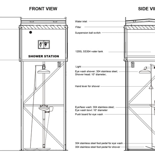 SPILLDOCSpilldoc Self Contained Gravity Fed Portable Shower & Eyewash Station 1500L Part Number: SD-602BBrand: SpilldocMaterial: 316 Stainless SteelTy...