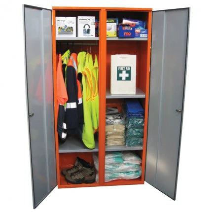 SAFE-T-STORE©PPE Storage Cabinet - Double Door (with hanging rail) Part Number: SPP1 Description The SAI-U® Emergency Personal Protective Equipment (PPE) cab...